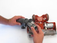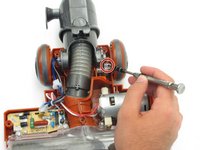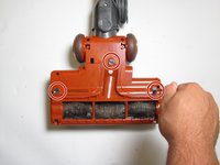 • Locate the screw to the right of the vacuum hose, close to the right wheel, and remove the screw with a Phillips #2 screwdriver.