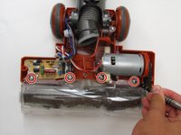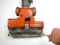 Use a Phillips #2 screwdriver to remove the four visible screws securing the rotary brush to the vacuum.