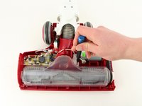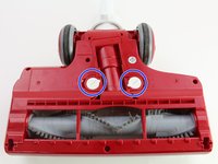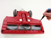 Remove the two 12.7 mm screws located at the top of the clear plastic brush roller housing using a Phillips #02 screwdriver.