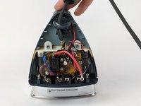 • Use the Phillips #0 screwdriver to remove the two 6.6mm screws holding the black wires to the body of the iron.