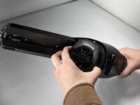 Use a TR9 Torx screwdriver to remove the two 8.7 mm screws previously behind the dust cup.