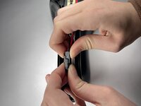 Disconnect the red wire by pressing down and gently pulling the two sides apart.