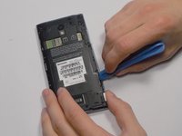 Pry open the back panel using a plastic opening tool. Do this around the edges until you are able to lift it off.