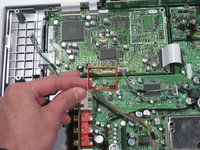 Using a Phillips #2 screwdriver, remove the two 6mm Phillips screws located near the inputs.