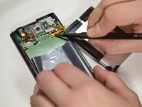 Use the tweezers to remove the Pancake connector that connects the battery to the phone.