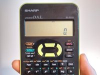 Hold the calculator in the palm of your hand with the display and keyboard facing up.