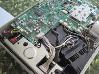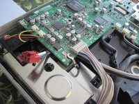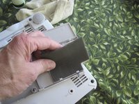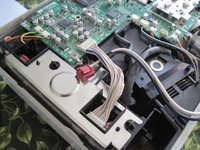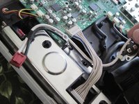Although not exactly necessary for this procedure, it's a good idea to remove the lamp access panel too at this point. Loosen the captive phillips screw at the edge of this cover (it's black) and then pressing the catch with your finger, open the cover like a door.