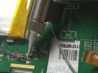 Next take the new speakers and solder the ends of each set of wires to the logic board. The red wires go to the positive and the black wire goes to negative,which is labeled on the logic board. Do this by touching the soldering iron to the twisted copper wire for about a second to heat the wire.