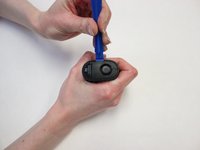 Now, using the metal screwdriver, unscrew the screw on the bottom of the device.
