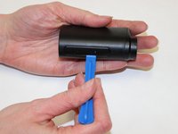 Use the plastic opening tool to pry open the plastic panel from the top of the camera.