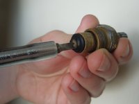• Using your flat head screwdriver, remove the screw from the end of the stem cartridge.