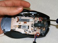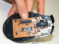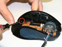 Use the Phillips #1 screwdriver to remove four 5 mm screws from the bottom of the mouse.