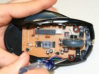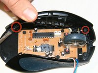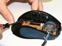 Use the Phillips #1 screwdriver to remove the two 9 mm screws from the bottom of the mouse.