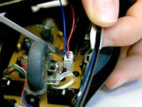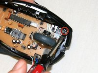 Touch your capacitor discharge tool to the capacitor leads on the board to release the stored energy. If leads are inaccessible, wait until you've removed the board from the mouse body.