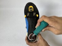 Insert all screws and lightly screw in and test the cleat for comfort. Once testing is done, tighten the screw until the cleat does not move.