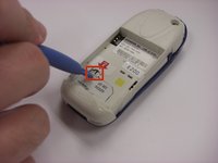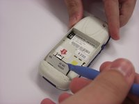 Lift battery at the cutout on the side of the phone, then tilt upwards and remove.