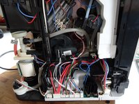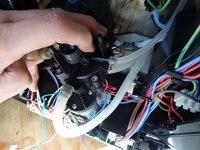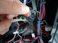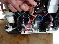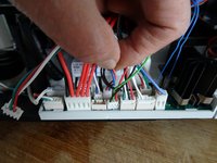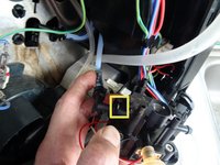 Suche die beiden Kabelstränge, die vom Keramikventil zur Hauptplatine gehen. Ziehe die Stecker ab und fädle die Kabel aus.