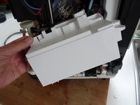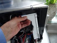 Hebe das Seitenteil weg, aber entferne es noch nicht ganz. Es ist noch mit einem Silkonschlauch angeschlossen.