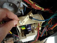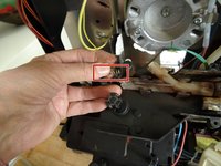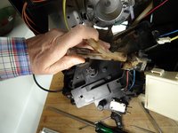 Pull off the two flat connectors with the yellow cables on the microswitch of the gearbox.