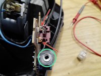 Schließlich habe ich noch an den beiden Lötpunkte des weißen Schalters den Durchgang geprüft. Hier lag das Problem. Es war keine Kontakt vorhanden.