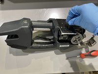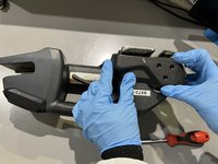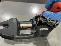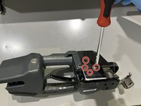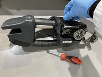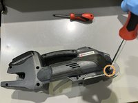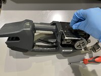 Use the Torx T4 screwdriver to remove the remaining 25 mm screws from the front of the strapping gun.