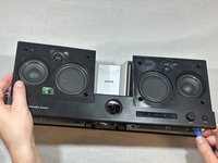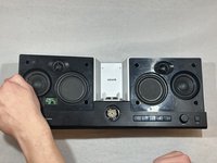 Pry the speaker covers up gently from their sides by pulling up on the four corner posts that hold the cover in place.