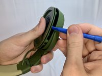 Slide a plastic opening tool between the plastic frame and speaker assembly of the headphones.