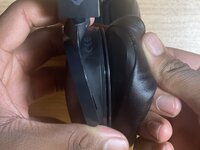 With the top held in place, slowly work your way around the earpad, aligning it around the headphone until the seam isn't visible anymore and the earpad is firmly in place.