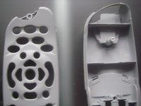 After all the tabs are off, the body should just fall away leaving the buttons, the circuit board, the case and the black infra-red bit at the end.