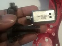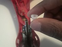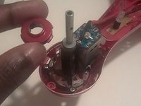 Unscrew the two .8cm screws on the bottom of the holding mechanism with the Phillips 0 Screwdriver.