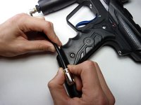 Remove the air tank by rotating it counterclockwise.