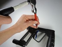 Remove the trigger pin by tapping it out of the right side of the gun using a 3mm screwdriver.