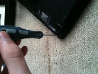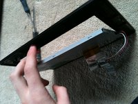• Remove the screws with a philips 00 screw drives, and remove the two metal brackets holding the LCD to the cheap black frame.