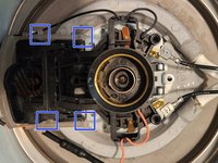 Disconnect the heating element cables. They slide pretty easily without tools. (Green Arrows)