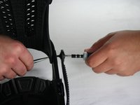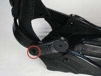 Move the straps and the highback plate out of the way in order to have clear access to the foot pad screw.