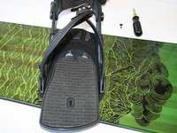 Use a #2 Phillips screwdriver to remove the four ovalhead M6 x 12mm screws that attach the base plate of the binding to the board.
