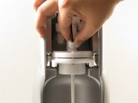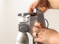 Under the carbonation button, at the end of the slim black tube will be a white cap, turn the cap in a counter clock wise motion to remove.