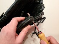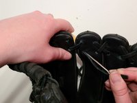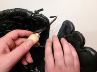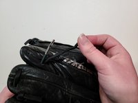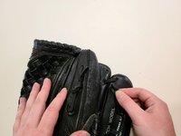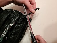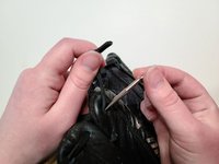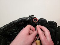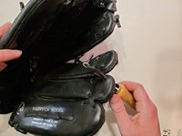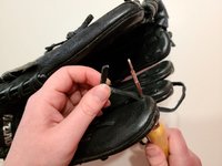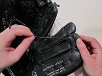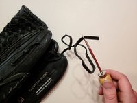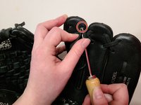 To remove a string from a softball glove, repeat these steps in reverse order.