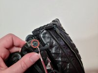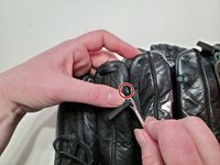 Insert the string back into the needle and push it through the bottom hole on the pinky.