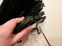 Going around the back of the middle finger, insert the string into top hole on the right side of the middle finger.