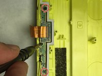 Use the screwdriver to unscrew two 3.6mm Phillips #0 screws securing the plastic plate.