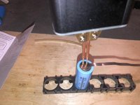 Spot weld the Top or Positive strip the same way as prior done with the negative. Place the strip at a 180 degree from the negative
