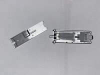 Some parts fell off while I was disassembling the device. The first picture shows the tiny metal cover and the battery locking mechanism, and the second and third show a part that broke off. (Whatever it is, it was seriously overbuilt. That thing had eight screws to undo!)