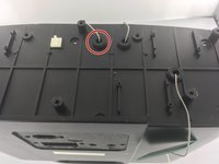 Lift up the front panel, forming a 90 degree angle with the back panel. Locate the locate ten pin connector shown. This is the wire that connects the front panel to back panel.