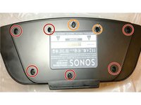 Orient the speaker so that the volume and speaker control buttons are facing down onto your work space. The Sonos name and product number should be facing upward toward the ceiling