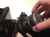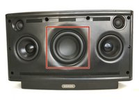 Remove the bass speaker from its seat by grasping the back-end and pulling upward.