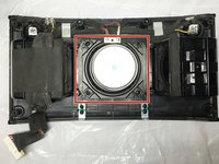 Use a pointed metal spudger to remove the rubber plugs covering the screws in the bottom left and right corners of the speaker panel.