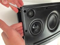 After the grill has been loosened on all edges. Use your fingers as a wedge and gently pull the grill off the speaker. This will reveal the front speaker panel.