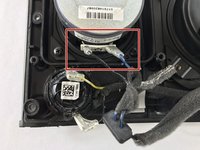 If you hear a distortion like crackling sound from the speaker and the right mid woofer / right mid driver / right mid range speaker feels and sounds different than the left when pushing it in, the easy fix is to just disable it. Press it down along the edge until the rubber edge releases and cut/rip out one of the two silver wires at the bottom.