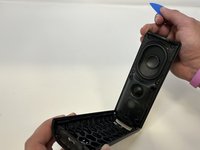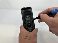 Use the iFixit opening picks to wedge between the split of the grille and the back of the speaker to pry the grille apart.